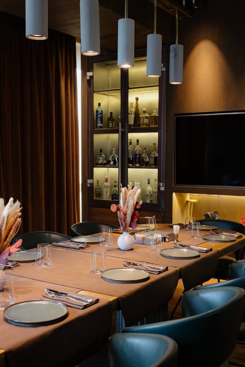 Мы создали пространство, которое идеально вписывается в респектабельный облик района. Просторные залы, современный лоск в интерьере и атмосфера благородного уюта делают ресторан универсальной точкой притяжения. Здесь одинаково комфортно провести статусные переговоры, красивый семейный ужин или встречу с друзьями.